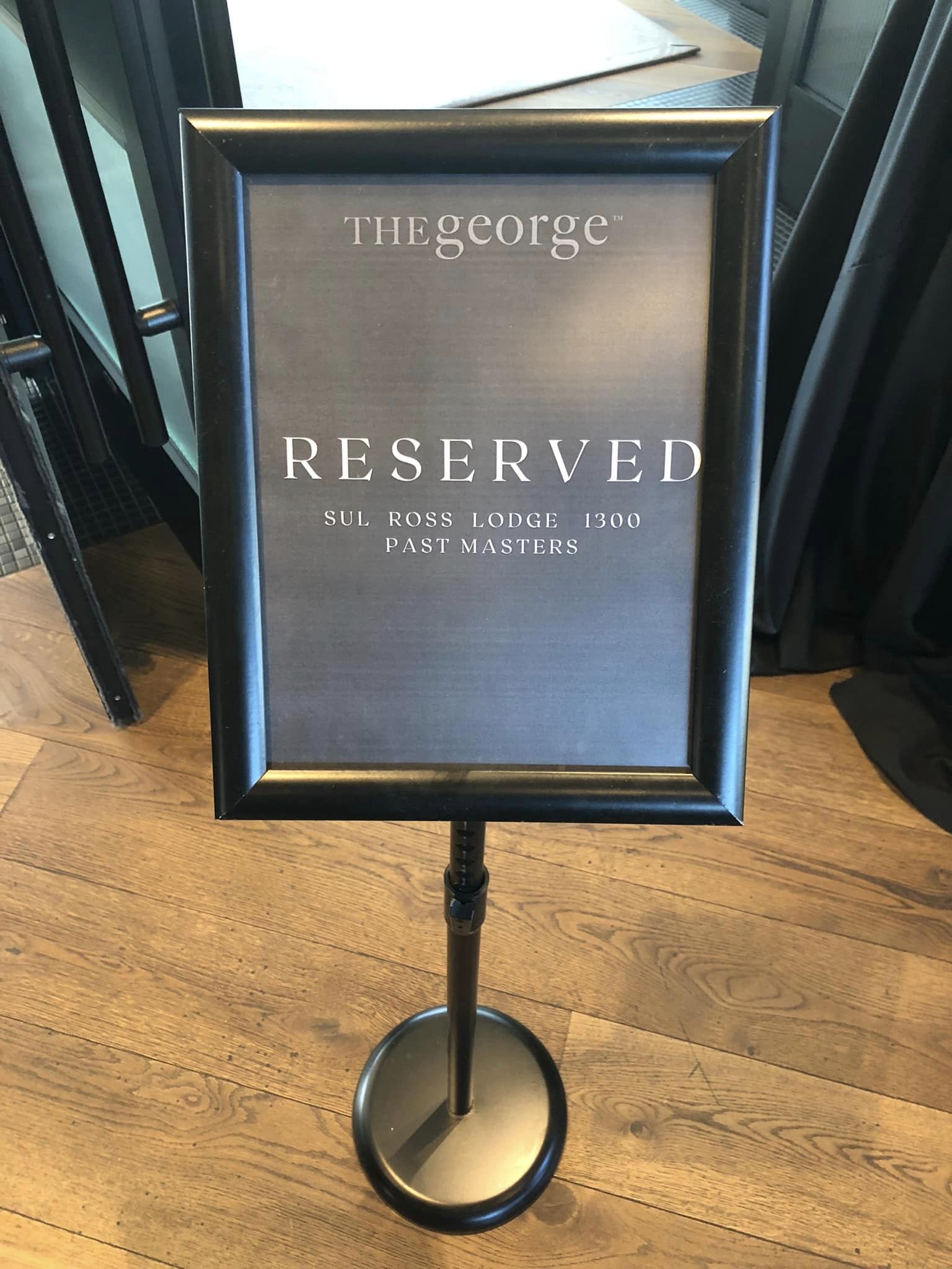 Reservation sign at The George for the 2023 Past Masters Dinner