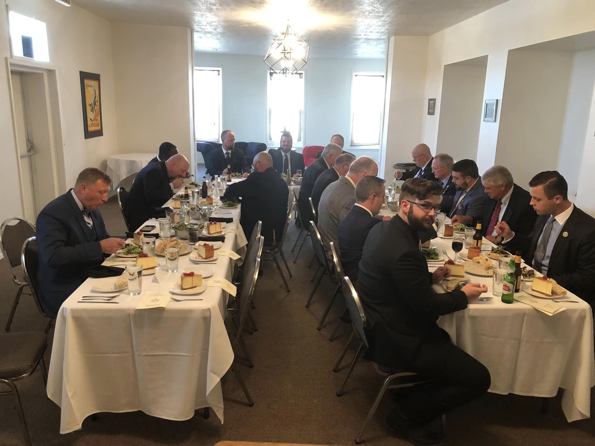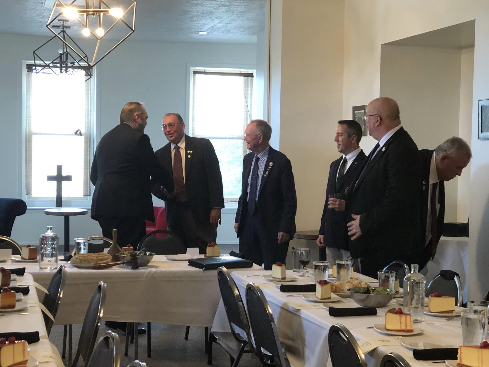 Last month on June 17th, the brethren of Sul Ross Lodge, along with visiting brethren of other lodges in the area, gathered together at Cafe Capri in Downtown Bryan for the 2023 Annual Festive Board. The festive board is held to celebrate the close of the Masonic Year and honor the Master of the Lodge before his term expires. Those present enjoyed a wonderful dinner followed by ceremonial toasts. The guest speaker was R:.W:. Jim Rumsey, Grand Jr. Warden of the Grand Lodge of Texas. The presentation he gave to the brethren was over the history of our masonic work, which was enjoyed by all who were present.