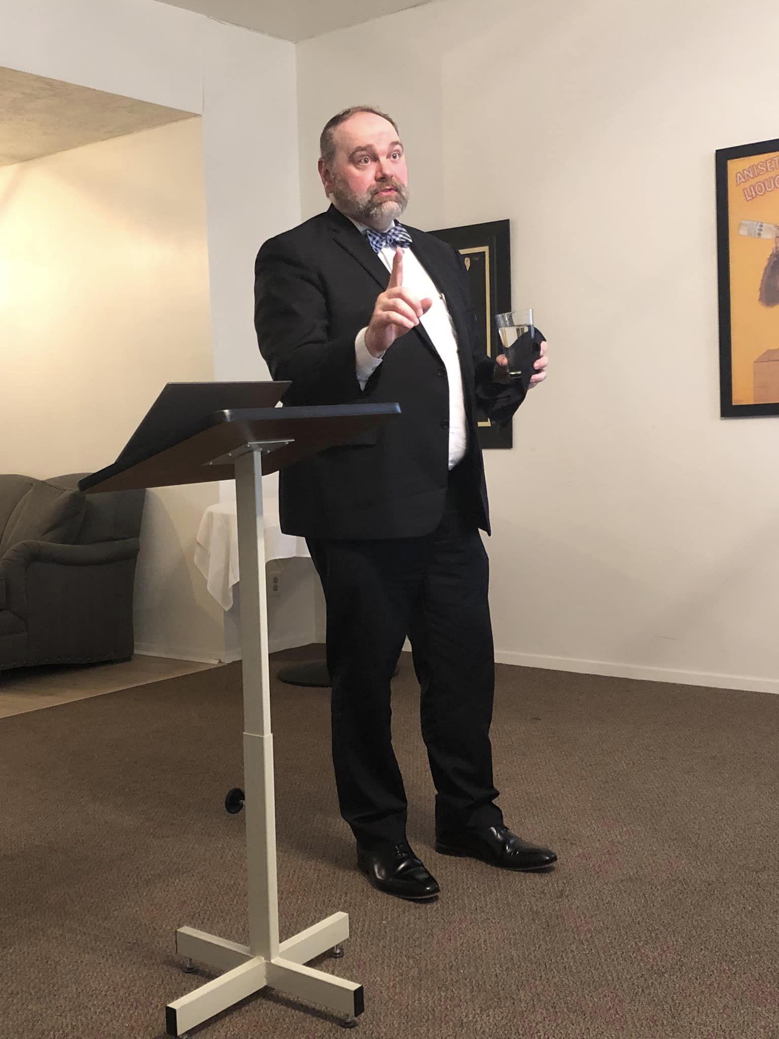 Jim Rumsey giving his presentation on the history of Masonic Work and Ritual in Texas.